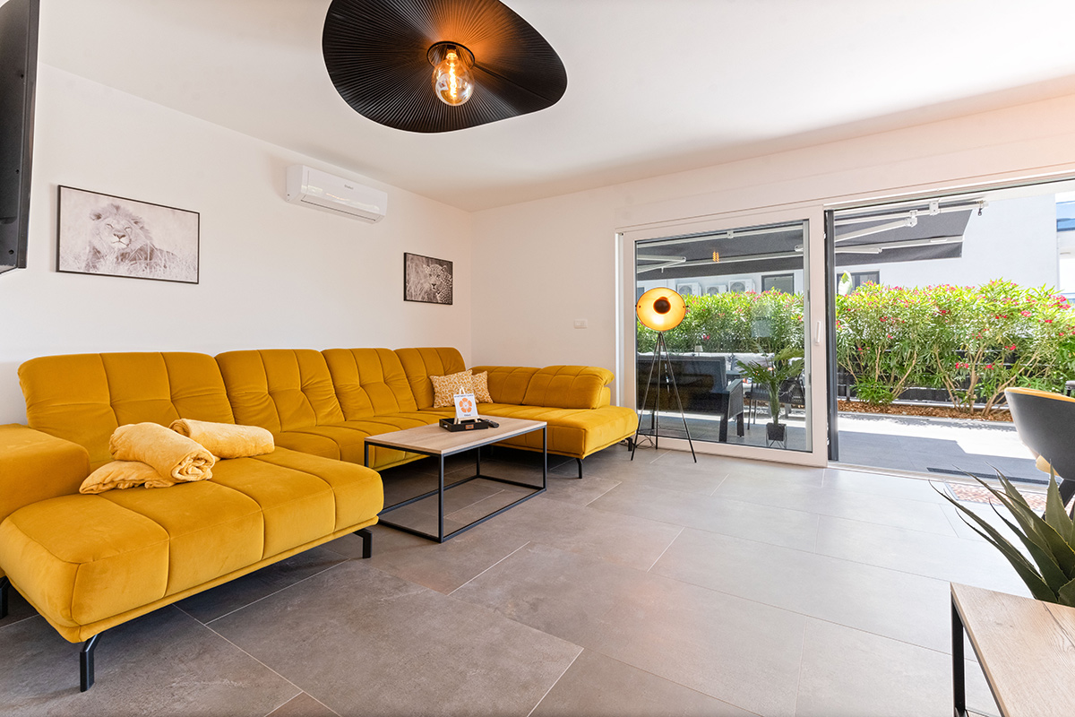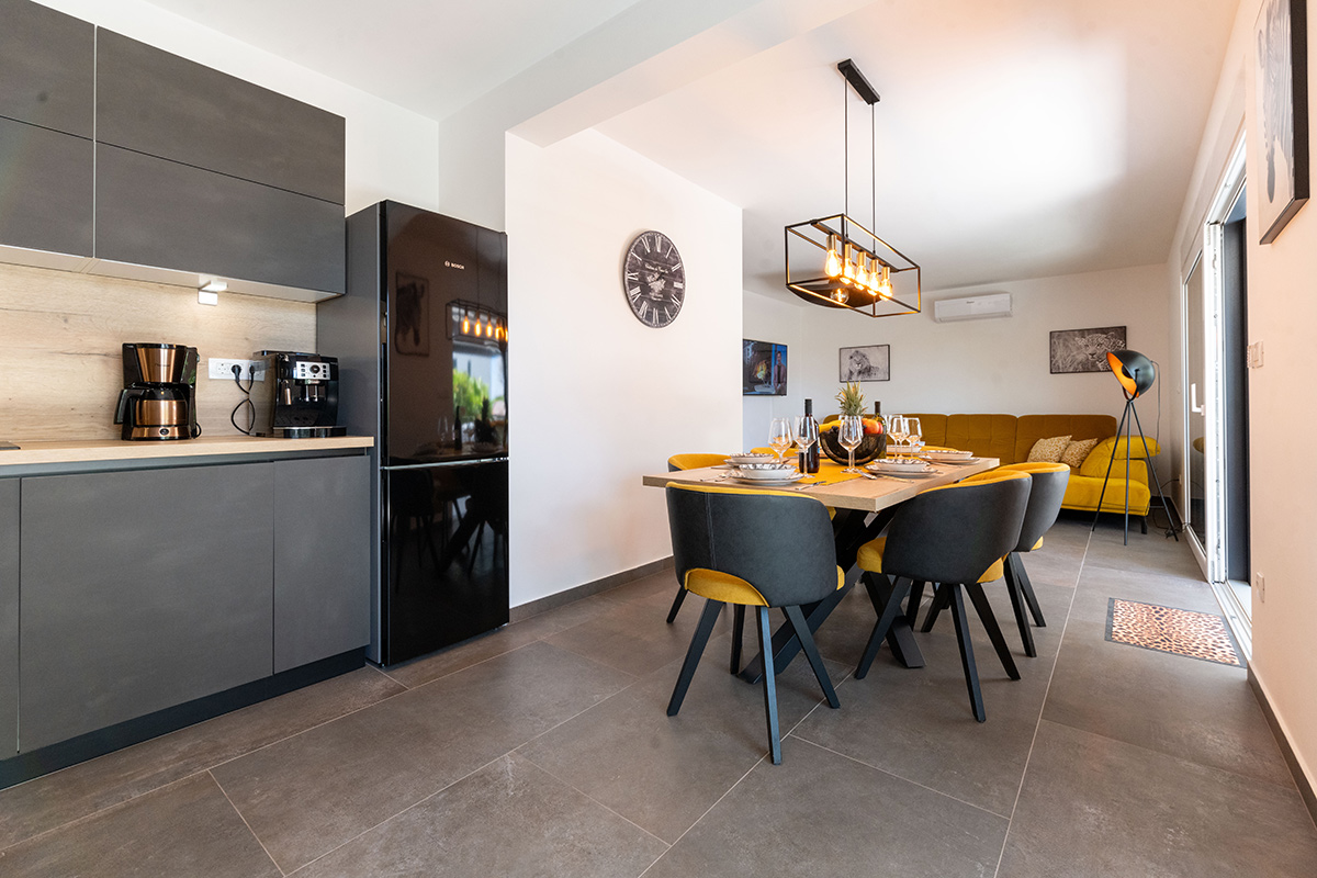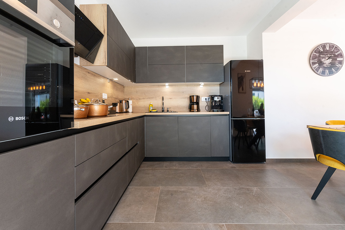 Das 4-Sterne-Apartment Tonka (Kategorie: Deluxe) ist die ideale Wahl für Gäste, die Luxus, Komfort und Stil in perfekter Kombination suchen. Mit großzügigen 100 qm Wohnfläche bietet es viel Platz für Familien oder Gruppen und sorgt zugleich für eine gemütliche, entspannte Atmosphäre. Die Deluxe-Ausstattung umfasst eine offene, moderne Küche, elegante Bäder, stilvoll eingerichtete Wohn- und Schlafzimmer sowie Klimaanlage und Highspeed-WiFi, die jeden Aufenthalt besonders angenehm machen.
