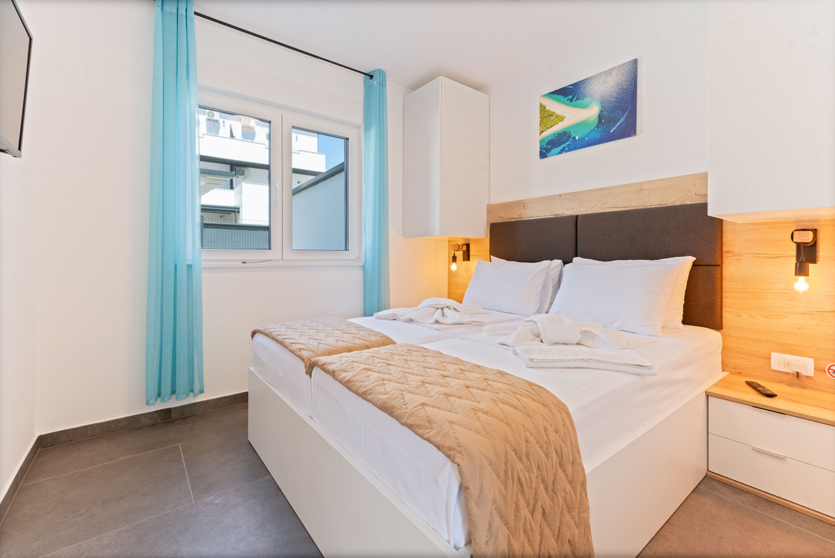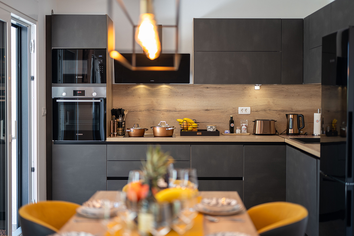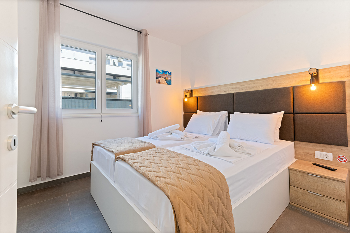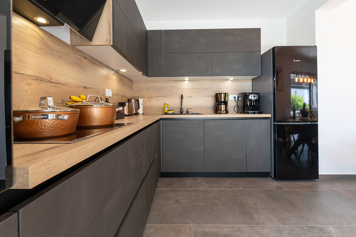 Das 4-Sterne-Apartment Tonka (Kategorie: Deluxe) ist die ideale Wahl für Gäste, die Luxus, Komfort und Stil in perfekter Kombination suchen. Mit großzügigen 100 qm Wohnfläche bietet es viel Platz für Familien oder Gruppen und sorgt zugleich für eine gemütliche, entspannte Atmosphäre. Die Deluxe-Ausstattung umfasst eine offene, moderne Küche, elegante Bäder, stilvoll eingerichtete Wohn- und Schlafzimmer sowie Klimaanlage und Highspeed-WiFi, die jeden Aufenthalt besonders angenehm machen.