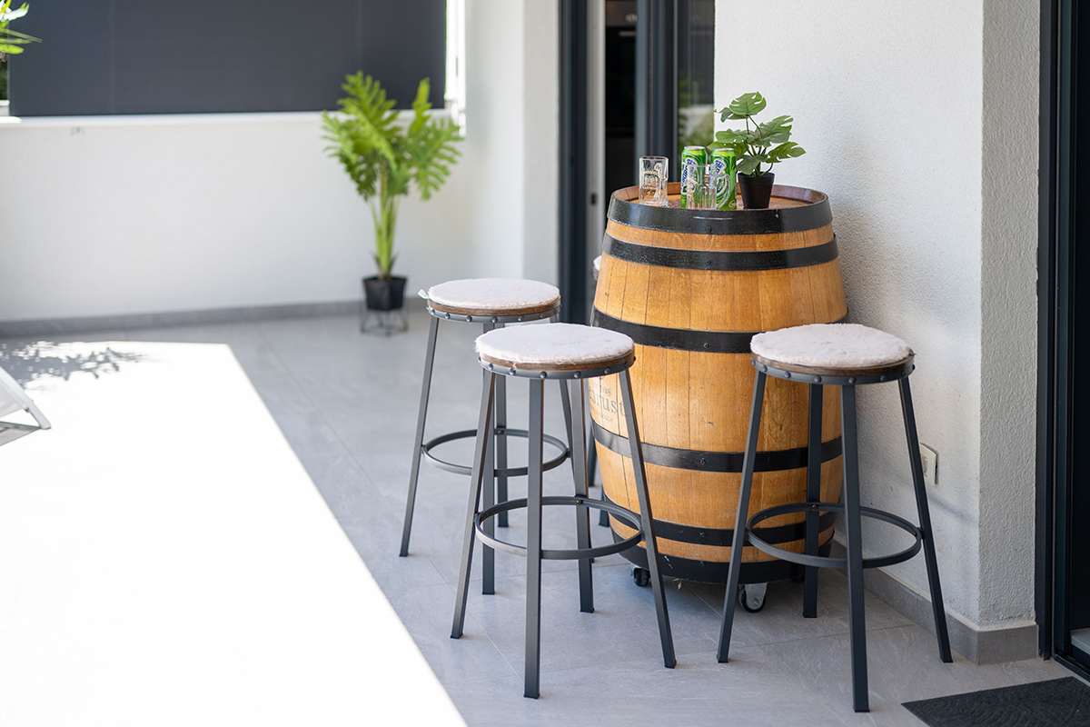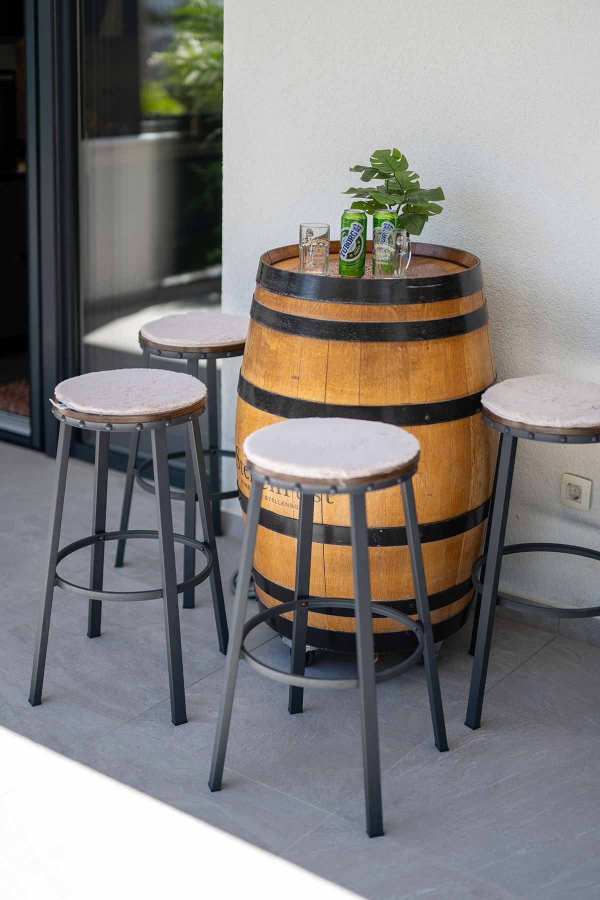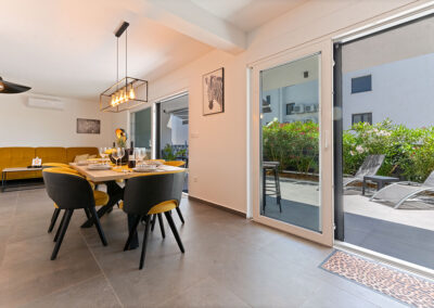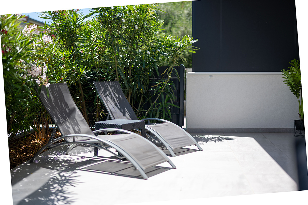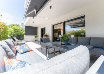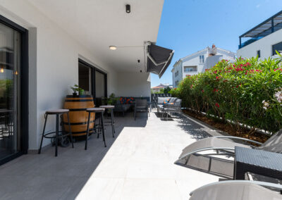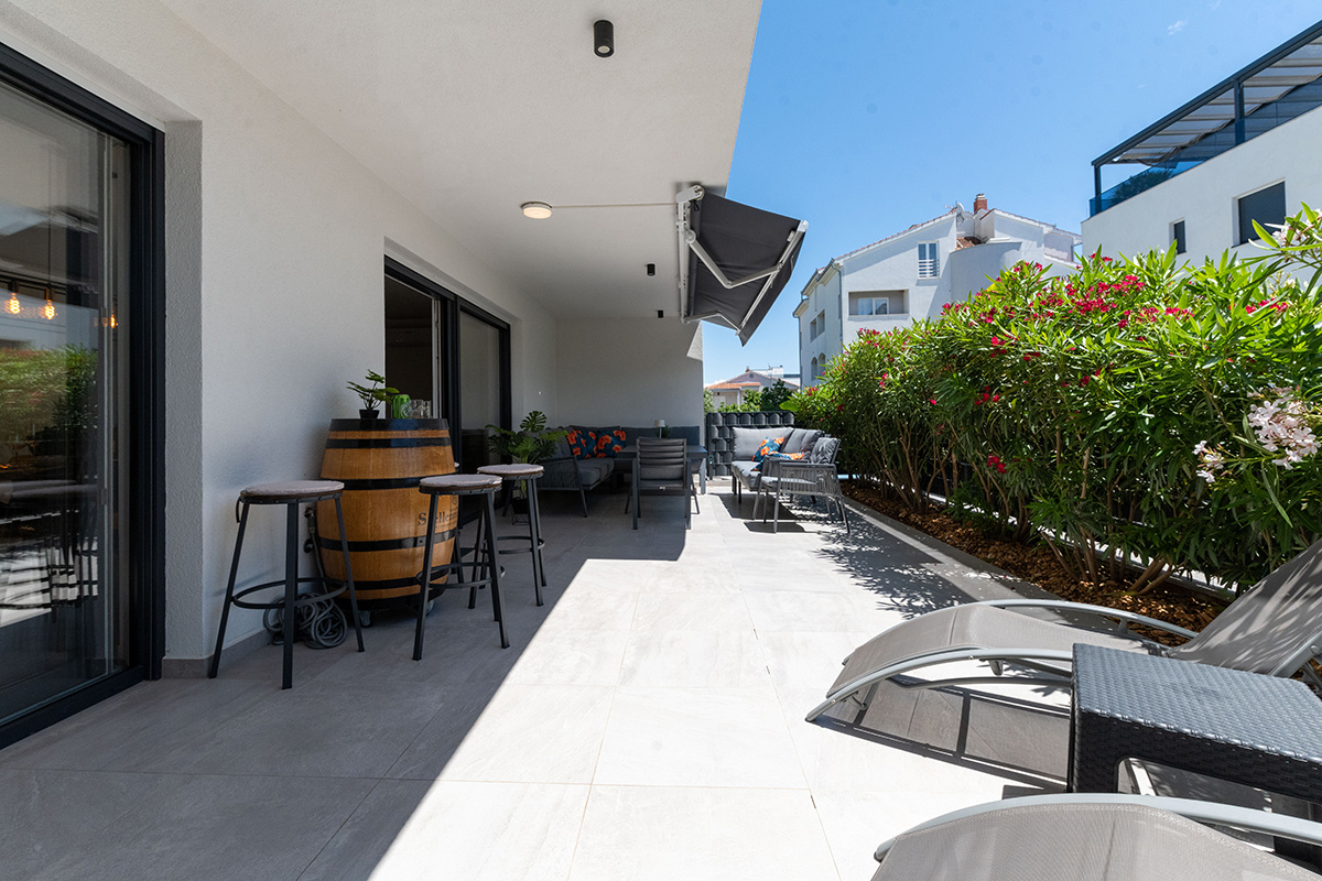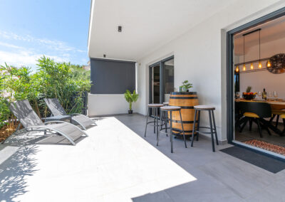 Ein absolutes Highlight ist die beeindruckende 40 qm große Terrasse, ideal zum Sonnen, Entspannen oder gemeinsamen Genießen von Mahlzeiten im Freien. Hier können Sie mediterrane Entspannung it allen Sinnen erleben, laue Abende genießen oder einfach die frische Adriabrise spüren. Durchdachtes Design, großzügige Raumaufteilung und hochwertige Ausstattung machen das Apartment Tonka perfekt für unvergessliche Ferien an der kroatischen Adria.